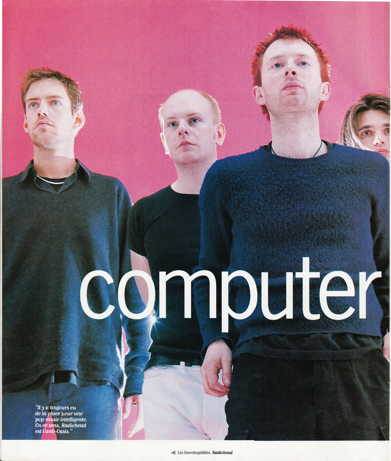 Car comme on est superstitieux et qu'en plus, on a bien travaillé aux cours d'histoire, on connaît parfaitement la portée symbolique de ces années à nombres jumeaux dans l'histoire du rock anglais : 66, 77, 88. Oui, quelque chose devra se passer en 99 et commencer en 98 ne serait pas une idée idiote. Parce qu'on ne peut pas continuer, ainsi, à tirer comme des brutes sur les réserves naturelles (Beatles, Stones...), qu'il faut trouver ailleurs une autre énergie. "Il y a bel et bien eu une sorte de croisade pour s'assurer du succès de Radiohead, confirme-t-on chez Q Magazine. Nous avons tous besoin de ce groupe, la presse comme le rock." "C'est triste, car nous ne nous considérons surtout pas comme un groupe de rock, se lamente Ed O'Brien. Nous nous sentons plus proches de Portishead, de Massive Attack, de Tricky ou de PJ Harvey que de Bush... Je ne supporte pas cette ferveur, le côté évangéliste qui entoure l'idée de croisade : Radiohead n'a rien à apporter, aucune réponse."