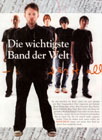 Yorke: (lacht) Ja, klar. Vor allem am Ende der "OK Computer"-Phase war es unerträglich. Unser einziger Freund war ein Journalist namens Nick Kent, der etwas Reflektiertes über die Platte schrieb. Inzwischen aber fühle ich mich nicht mehr verantwortlich für die Reaktionen auf unsere Musik. Ich habe keine Zeit mehr dafür. Ich bin jetzt Vater (Im Februar 2001kam Yorkes Sohn Noah zur Welt – Anm. d. Verf.). Die Zeit, in der ich Musik mache, ist sehr wertvoll. Ich will sie nicht verschwenden mit Gedanken. | |