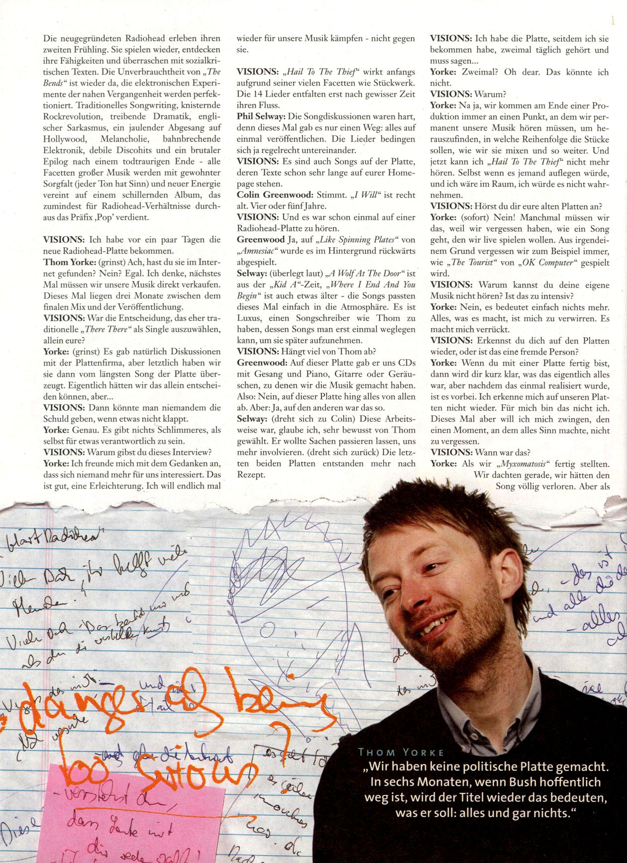 VISIONS: Kann man sagen, dass "Kid A" und "Amnesiac" als Reaktion gedacht waren auf das, was damals passierte?