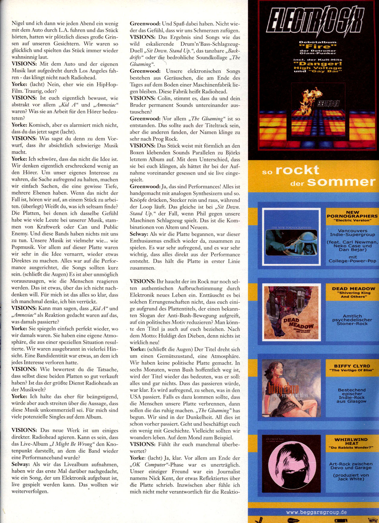 Yorke: Ich halte das eher für beängstigend, würde aber auch streiten über die Aussage, dass diese Musik unkommerziell sei. Für mich sind viele potenzielle Singles auf dem Album. | |