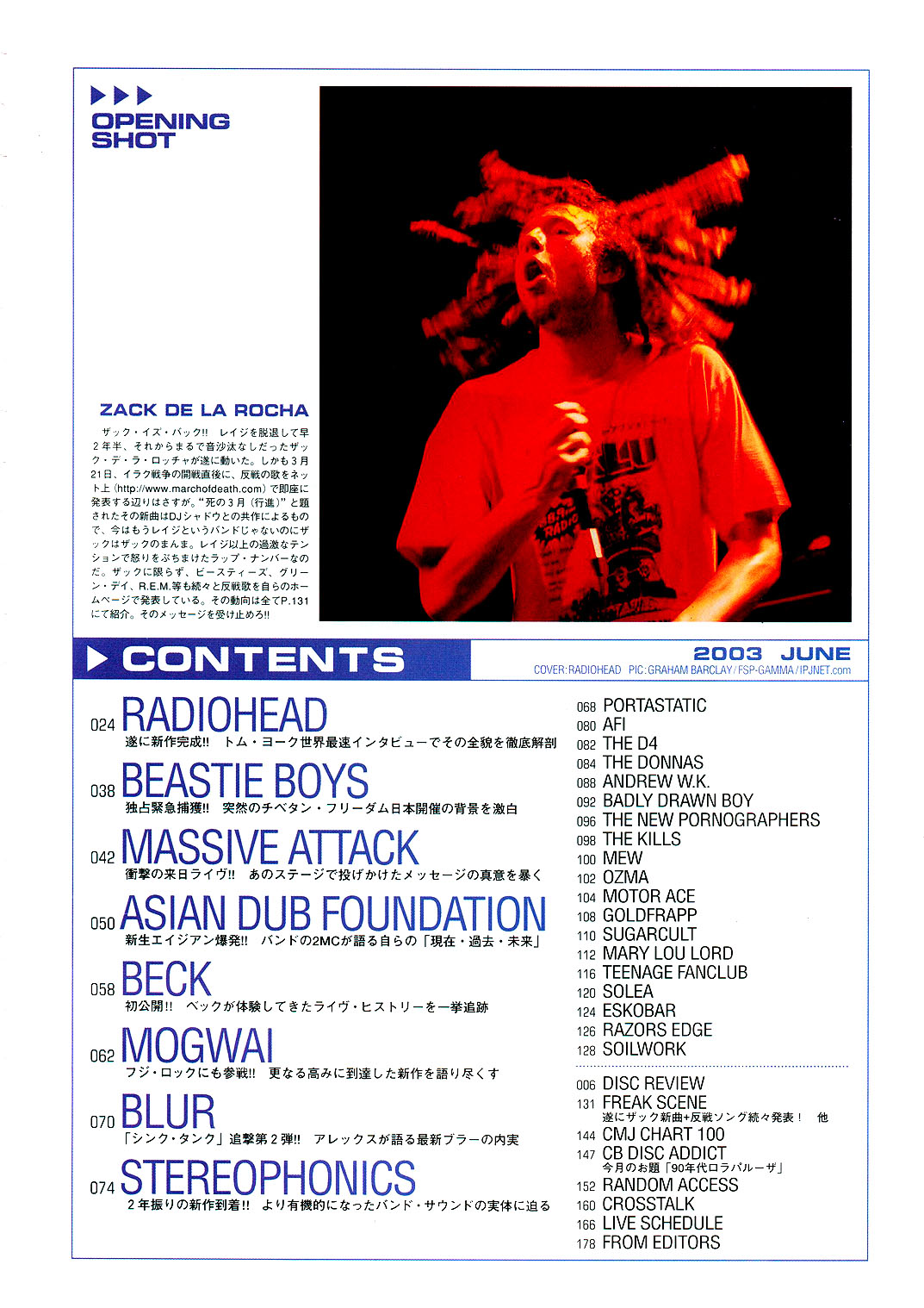 トム,ヨーク(Vo,G) 「あの時のことはよく 覚えてるよ。だって、ナオミ,キャンベルと 同じ飛行機だったんだよね、僕たち」