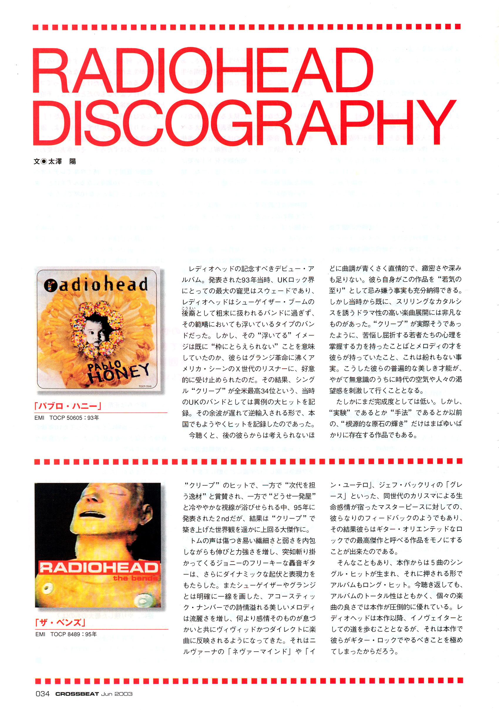 例えば“2+2=5”や“ゴー,卜ゥー. スリープ”のギター,サウンドを取っても、 「ギターにはまだまだ可能性がある!」と改 めて思わせてくれる。“ゴー.卜ウー,スリ ープ”のクライマックスで斬り込んでくるギ ターの音には、鳥肌が立った。先行シングル “ゼア、ゼア”にしても、楽曲はレディオへ ッドにしては普通にも思える.が(もう一度書 いておこう。レディオヘッドにしては、だ)、 音の一つ一つが持つ表情が尋常ではない。