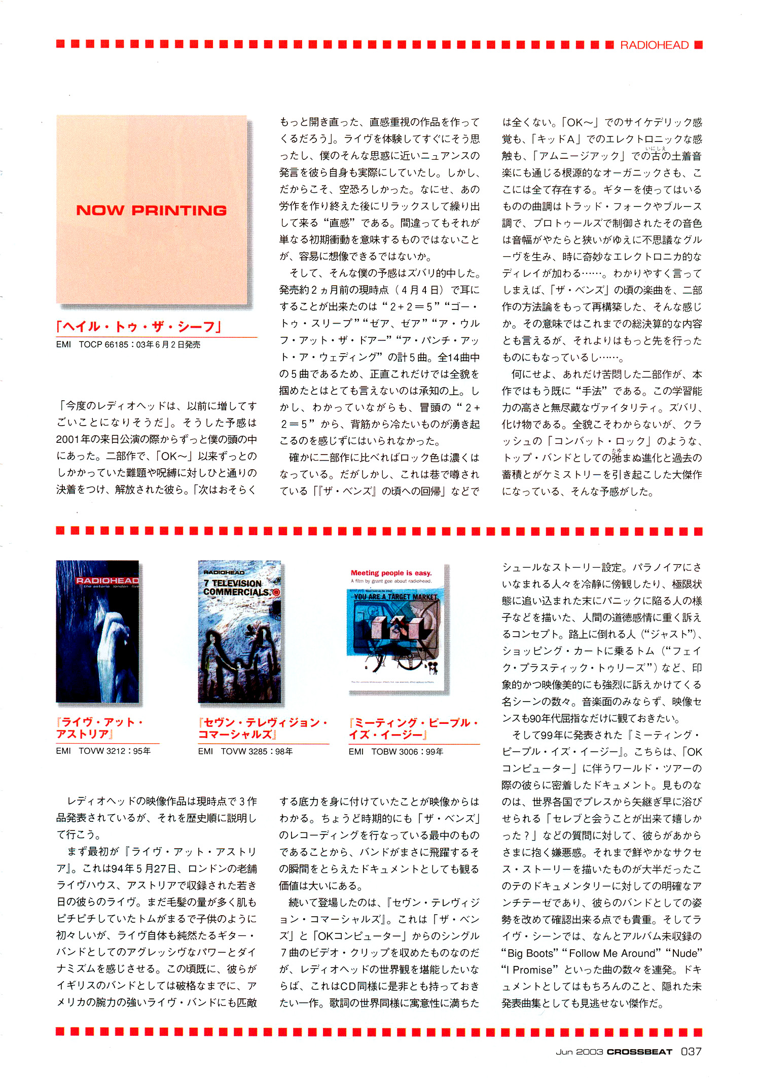「新作『ヘイル.卜ウー.ザ.シーフ』は、 レデイオヘッドがこれまでに作った中で、最 も気楽で肩の力を抜いた、自然体のアルバム である」