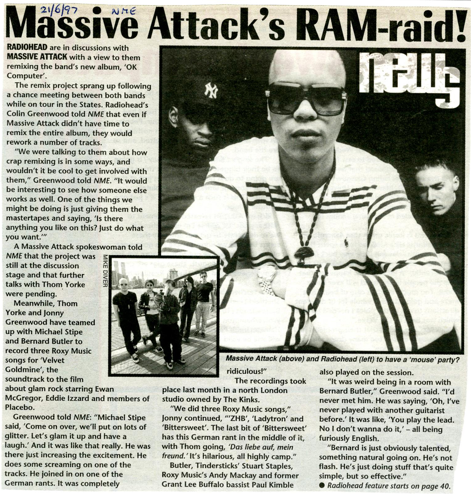 Thom Yorke is moving into that scene now. Everybody wants a photo, a TV interview, a favour for a friend. It’s probably best that he’s in the company of Michael Stipe much of the time, who’s introducing him to other artists, vibing him up, developing a friendship that began on the ‘Monster’ tour and blossomed in London during the sessions for the Velvet Goldmine soundtrack when Michael, Thom, Jonny Greenwood and Bernard Butler were having a hilarious time in the studio, getting into the glam aesthetic, performing Roxy Music songs.