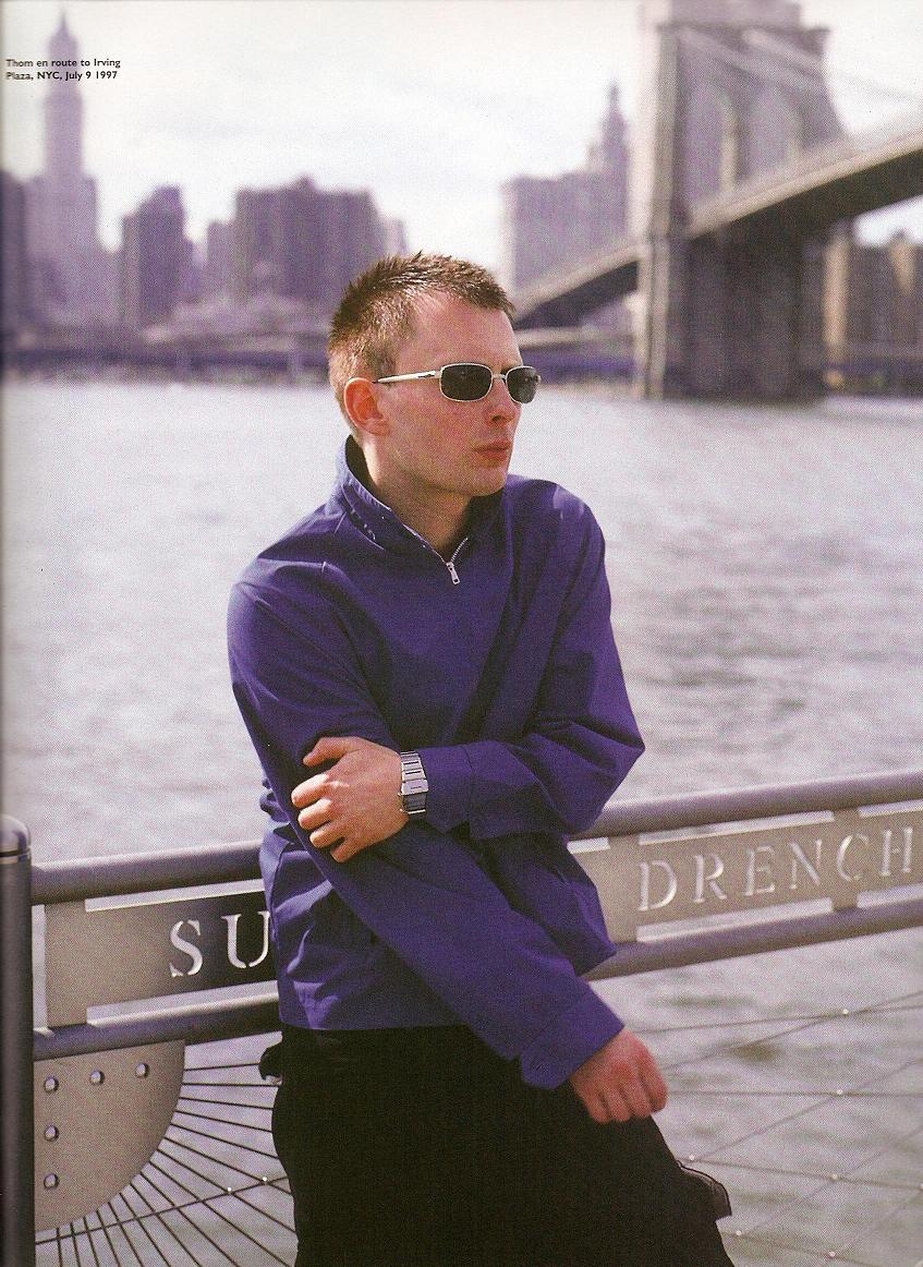“He’s a lovely bloke,” Thom said earlier, “and he’s coped with fame very well – which helps me, ‘cos I find myself having to fight certain aspects of it at the moment. I don’t like my old friends talking to me like I’m a pop star, ‘cos it makes me feel like I’m becoming two dimensional.”