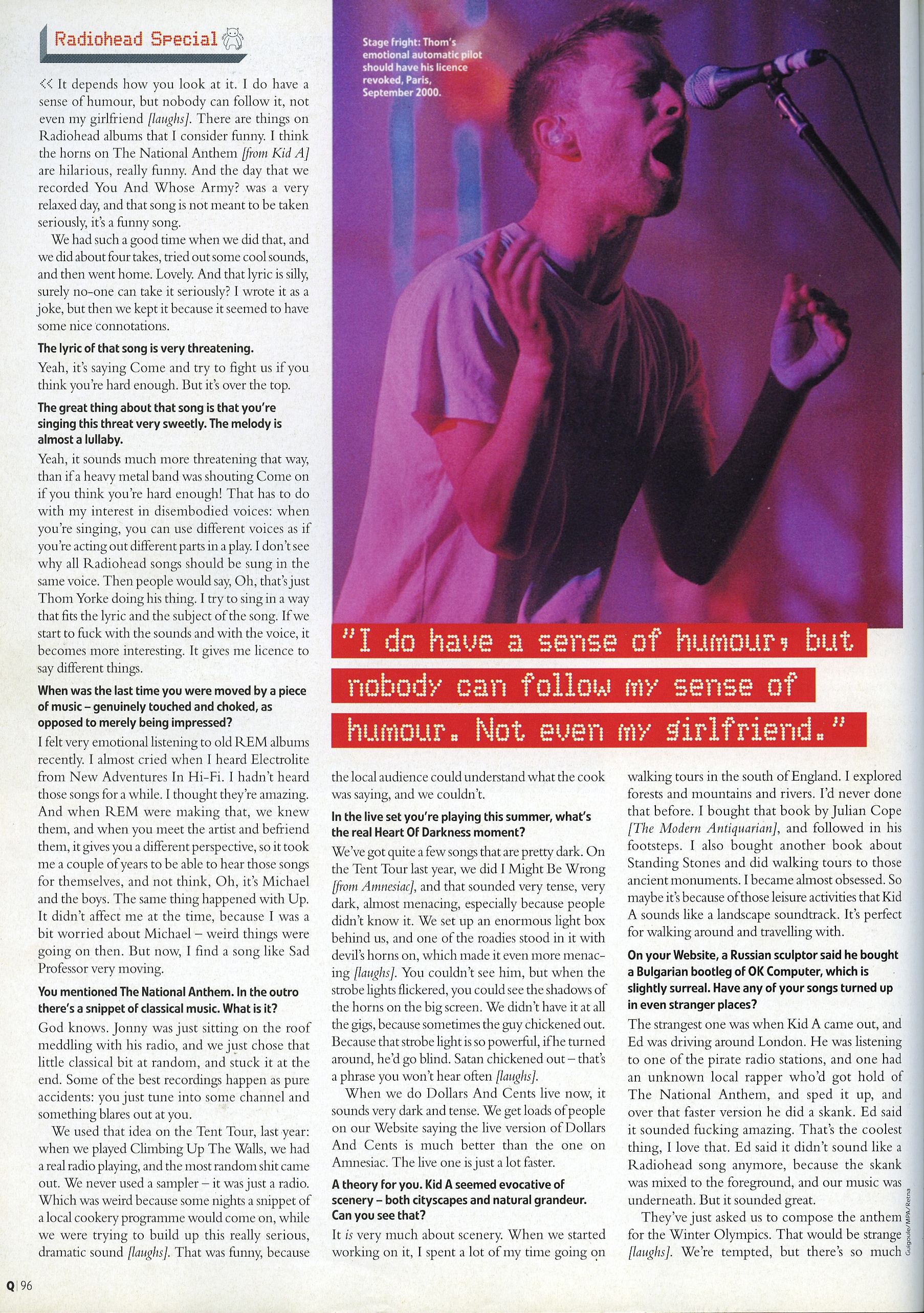 Why make the logical follow-up to OK Computer in a few months when you can go off your rocker for two years? Radiohead don't make things easy for themselves but now, with a new album, a new baby, and a clear head, Thom Yorke wants to talk. Kicking off a 20 page 'Head bonanza, rock's most innovative mind sits down for a very illuminating chat. “We went stark raving mad,” he tells Q.