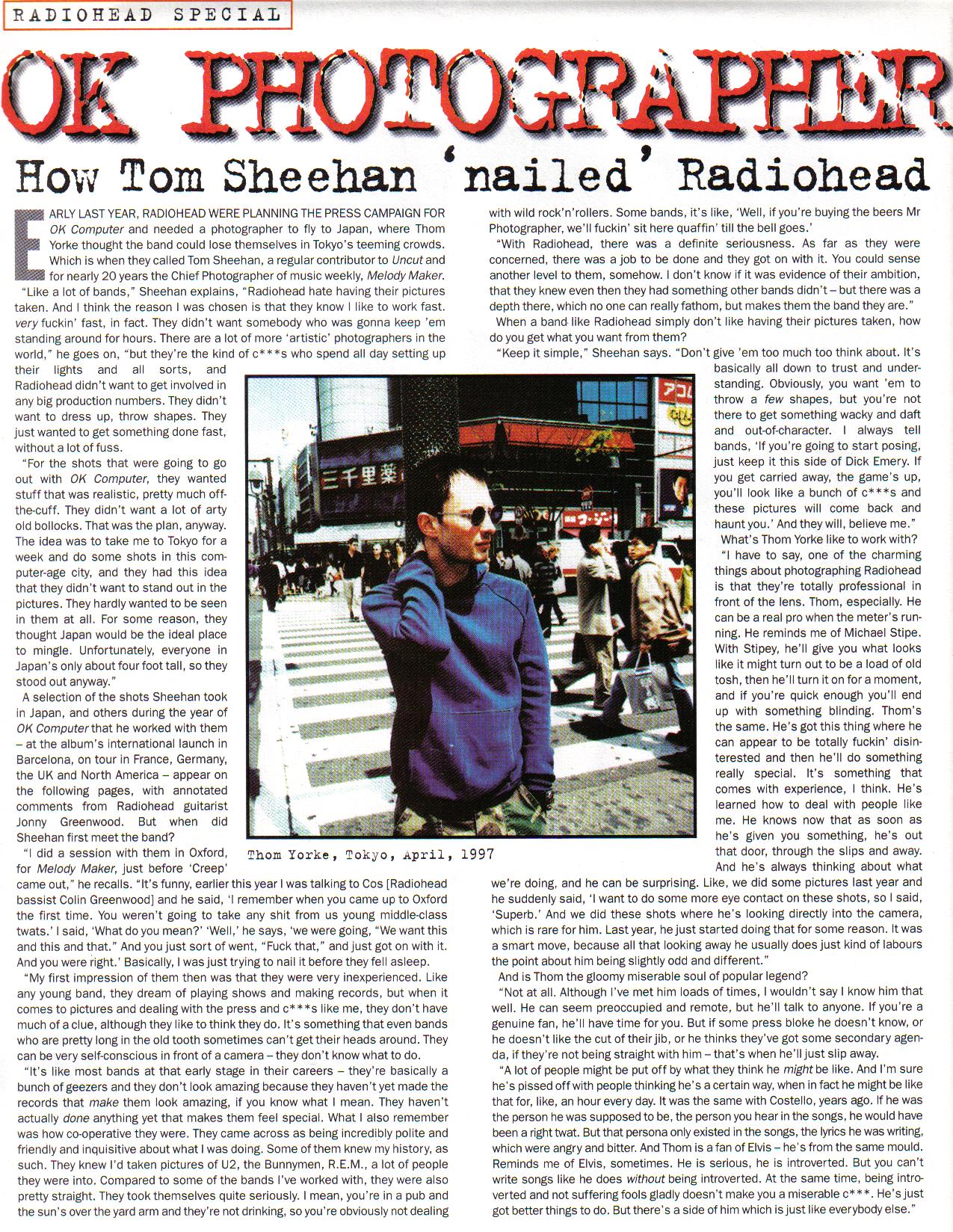 EARLY LAST YEAR, RADIOHEAD WERE PLANNING THE PRESS CAMPAIGN FOR OK Computer and needed a photographer to fly to Japan, where Thom Yorke thought the band could lose themselves in Tokyo’s teeming crowds. Which is when they called Tom Sheehan, a regular contributor to Uncut and for nearly 20 years the Chief Photographer of music weekly, Melody Maker.