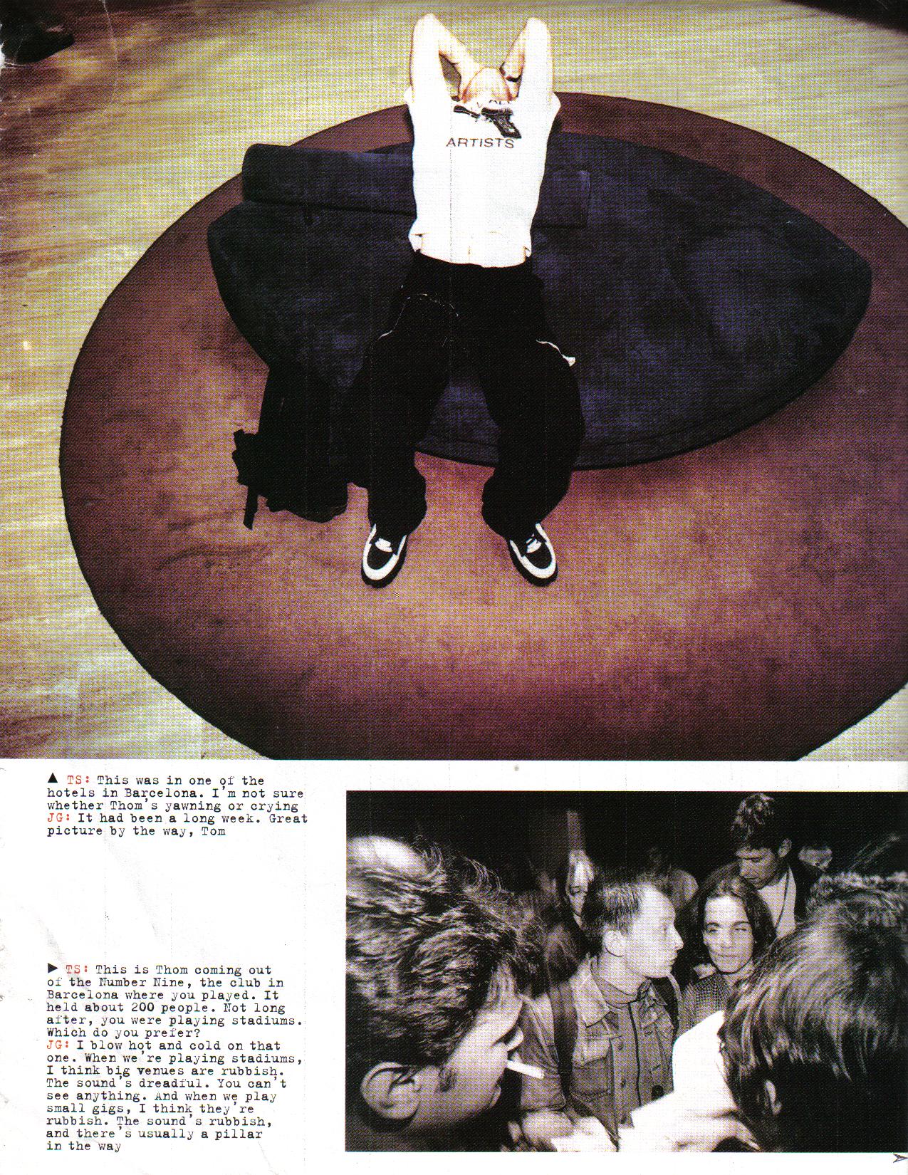 TS: This is Thom coming out of the Number Nine, the club in Barcelona where you played. It held about 200 people. Not long after, you were playing stadiums. Which do you prefer?