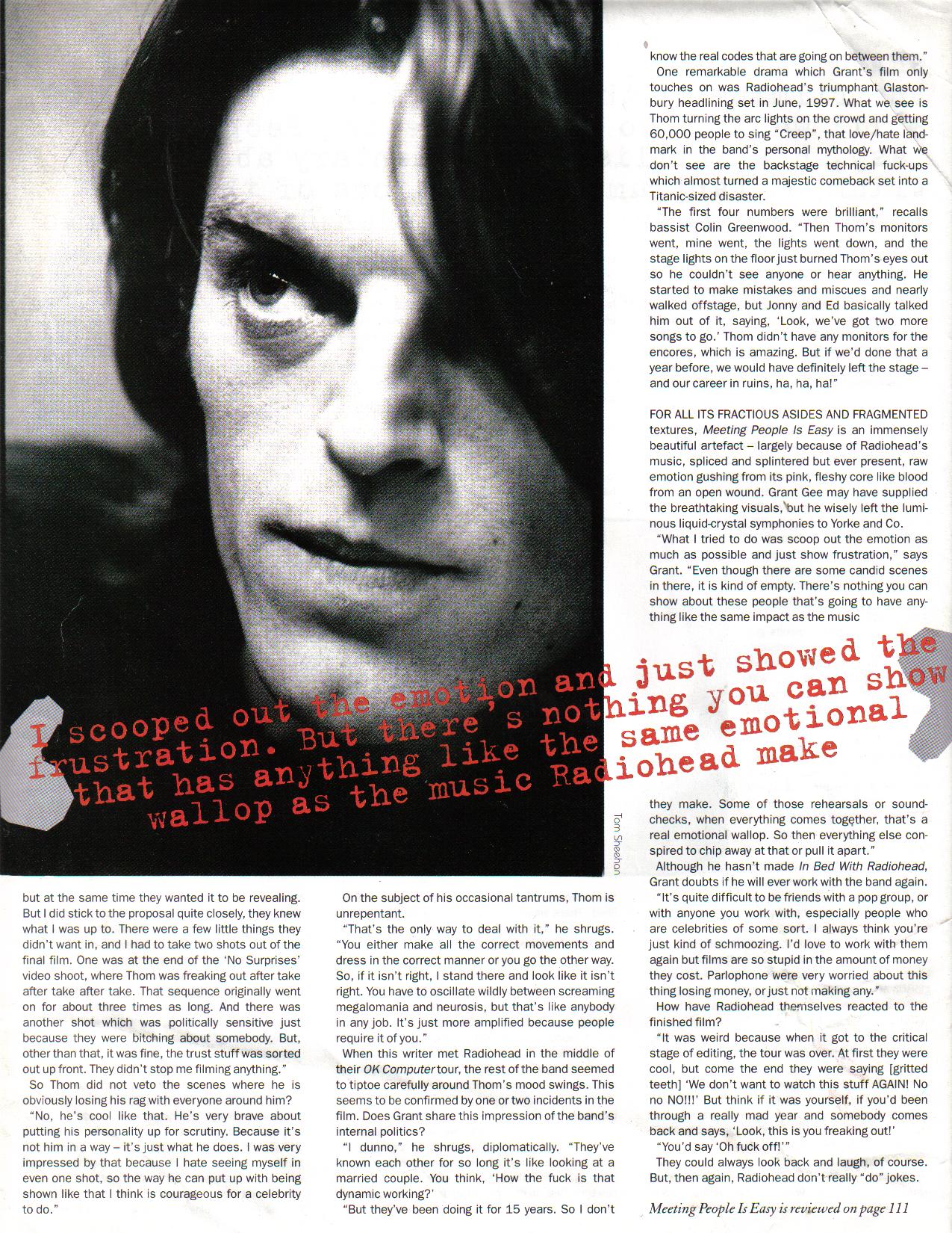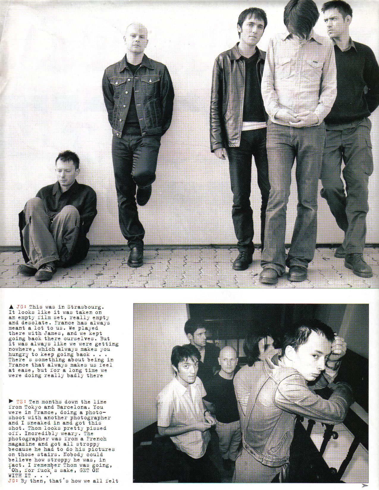 “Like a lot of bands,” Sheehan explains, “Radiohead hate having their pictures taken. And I think the reason I was chosen is that they know I like to work fast, very fuckin’ fast, in fact. They didn’t want somebody who was gonna keep ‘em standing around for hours. There are a lot of more ‘artistic’ photographers in the world,” he goes on, “but they’re the kind of c***s who spend all day setting up their lights and all sorts, and Radiohead didn’t want to get involved in any big production numbers. They didn’t want to dress up, throw shapes. They just wanted to get something done fast, without a lot of fuss.
