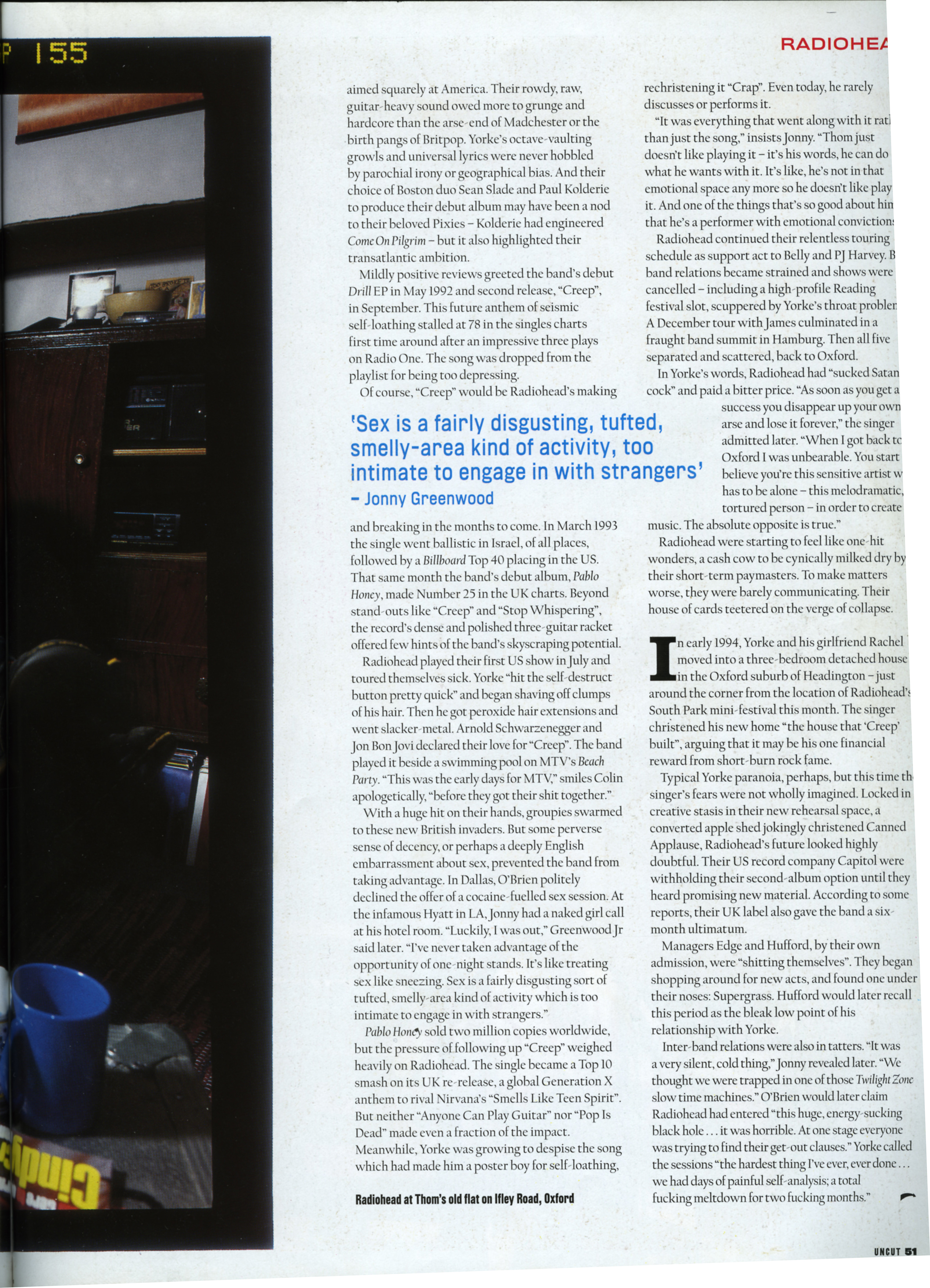 He seems particularly wary today because Uncut's music editor Paul Lester commissioned a Melody Maker feature six years ago that still incenses him to this day (see Thom Yorke Vs The Press panel). "Paul Lester's the c*** that stitched me up in the first place,” is his assessment of the whole sorry incident.