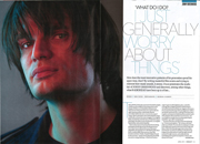 "I play the piano a lot at the moment," he says after a pause. "I don't know, I'm a bit low on hobbies. I used to do lots of photography... I don't know. What do I do? What do you do? I just generally worry about things, I think? And daydream ideas for programming." That puts him back in his stride. "The programming is really fun at the moment, very satisfying. I spend half my time writing music software, computer-based sound generators for Radiohead. Trying to bypass other people's ideas of what music software should do and how it should sound, going back a step. It's like building wonky drum machines, not using presets, basically. It's like 'Mouse Trap', you construct things." Has he got a mathematical mind, then? "I like a lot of popular science writing — John Gribbin and stuff. Lots of nerdy science and linguistics books. Yeah, I'm a bit trainspottery, let's not deny it."