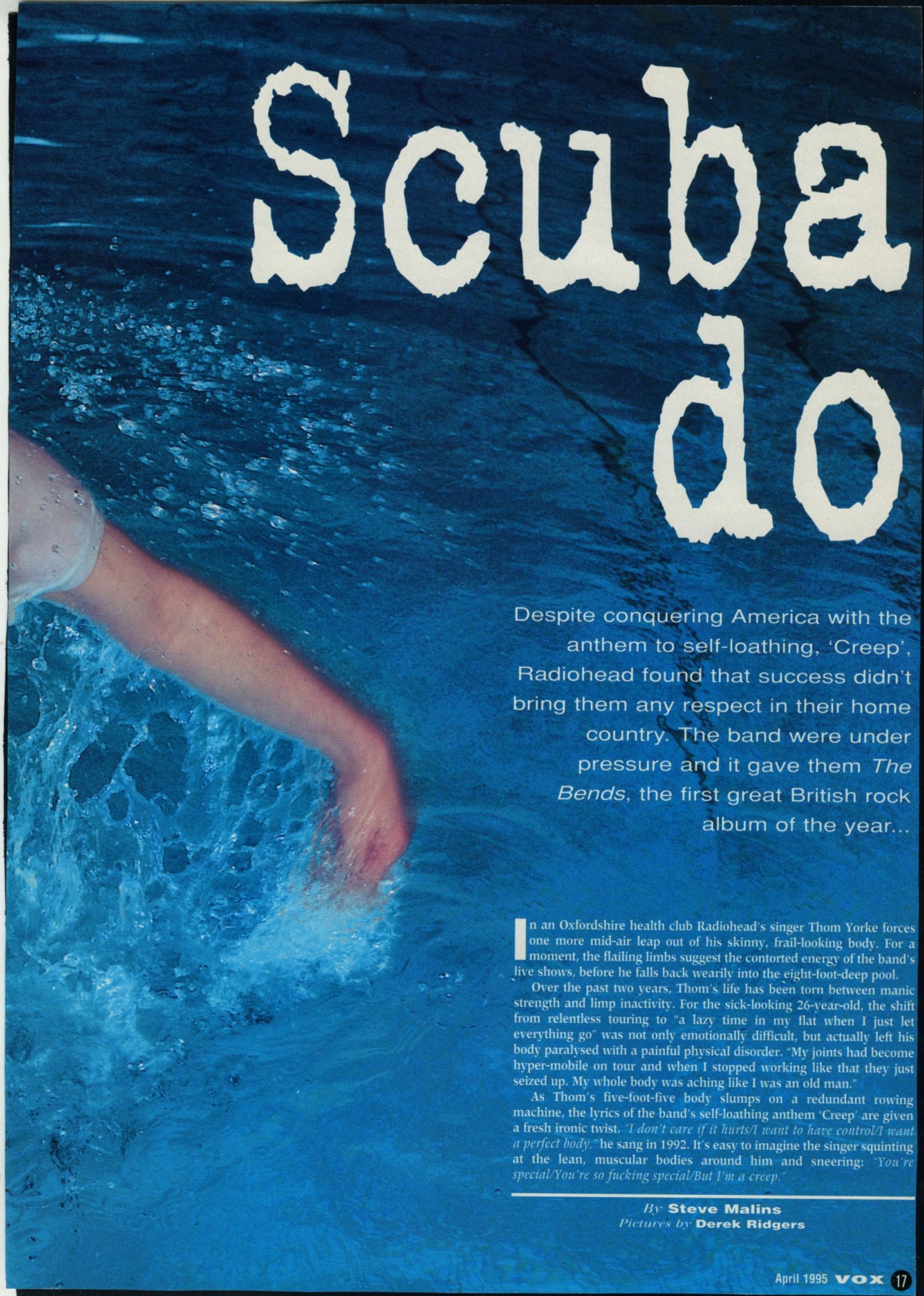 In an Oxfordshire health club Radiohead's singer Thom Yorke forces one more mid-air leap out of his skinny, frail-looking body. For a moment, the flailing limbs suggest the contorted energy of the band's live shows, before he falls back wearily into the eight-foot-deep pool.