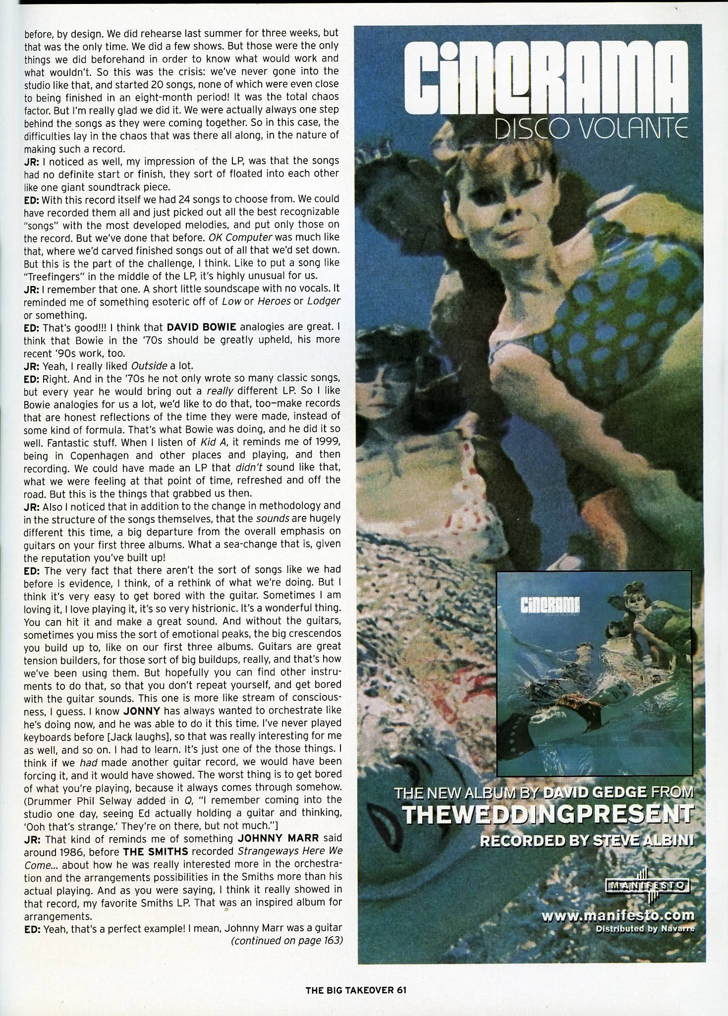 ED: I mean, I don’t think that was all there was to it. I don’t think you can be thinking like that entirely. Yes, it’s great to be a surprise, but we kind of hoped that people would say that last time with OK Computer, that that would catch them by surprise after The Bends, too. But you see, I hope it doesn’t just go into the realms of gratuitousness, that’s not the issue. It’s not like, "Wow, we’ve shocked people!" It has to move people, too, or it’s worthless. We want to move people most of all.