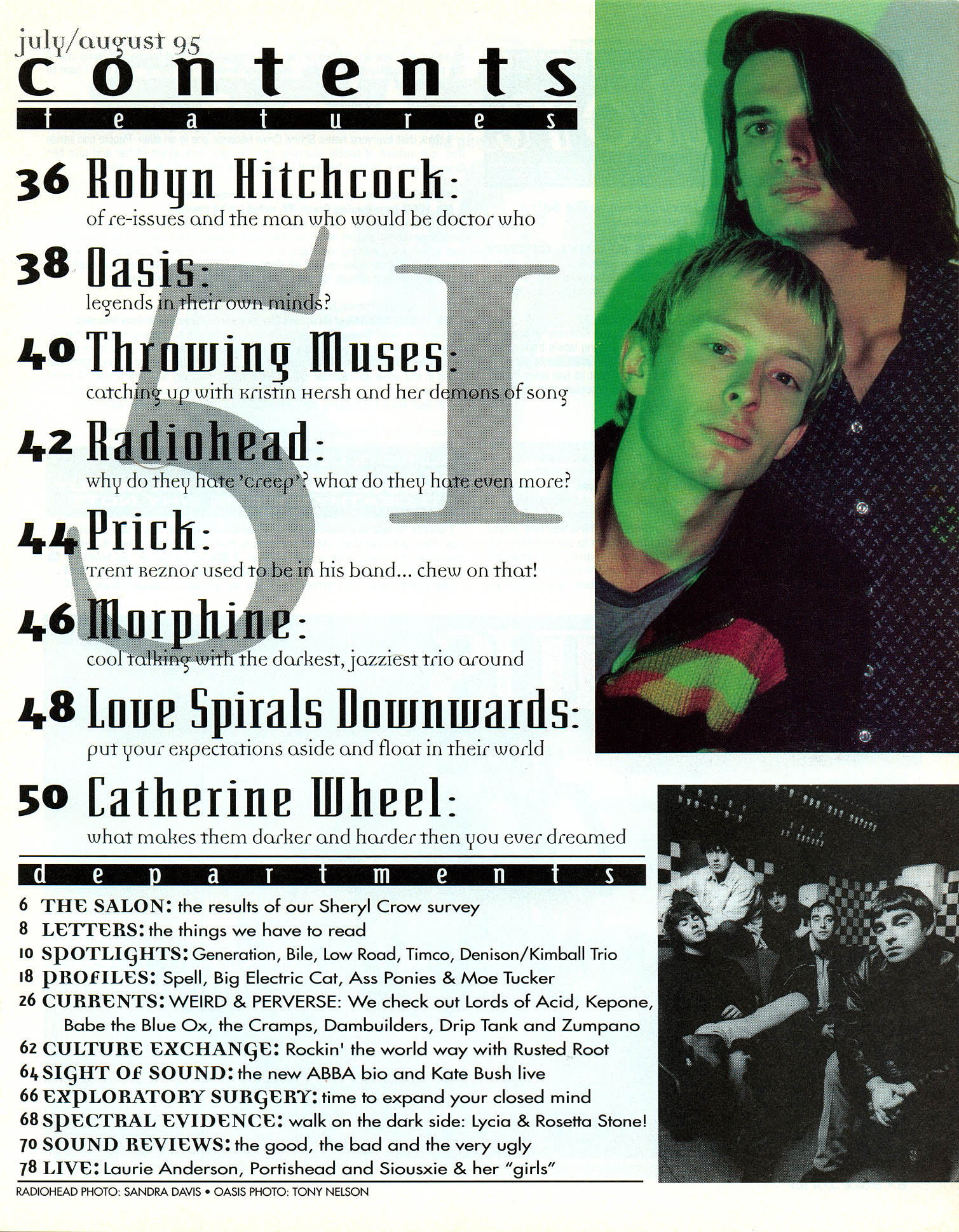 The song that shall remain nameless propelled Radiohead into the public ear. Thom hates talking abut 'Creep,' since that song broke the band in more ways then one. It's understandable: would you enjoy being known as that 'Creep' guy? When Thom mentioned he had a steady girlfriend the press howled how dare he: he's supposed to be a tortured creep. No, folks, Thom's much more the prince of perpetual pissed offness then of shattered vulnerability. He's a cutting cormplainer, not a whiny creep. But he gets no pity for Radiohead's success. He'll just have to get over that tragedy.