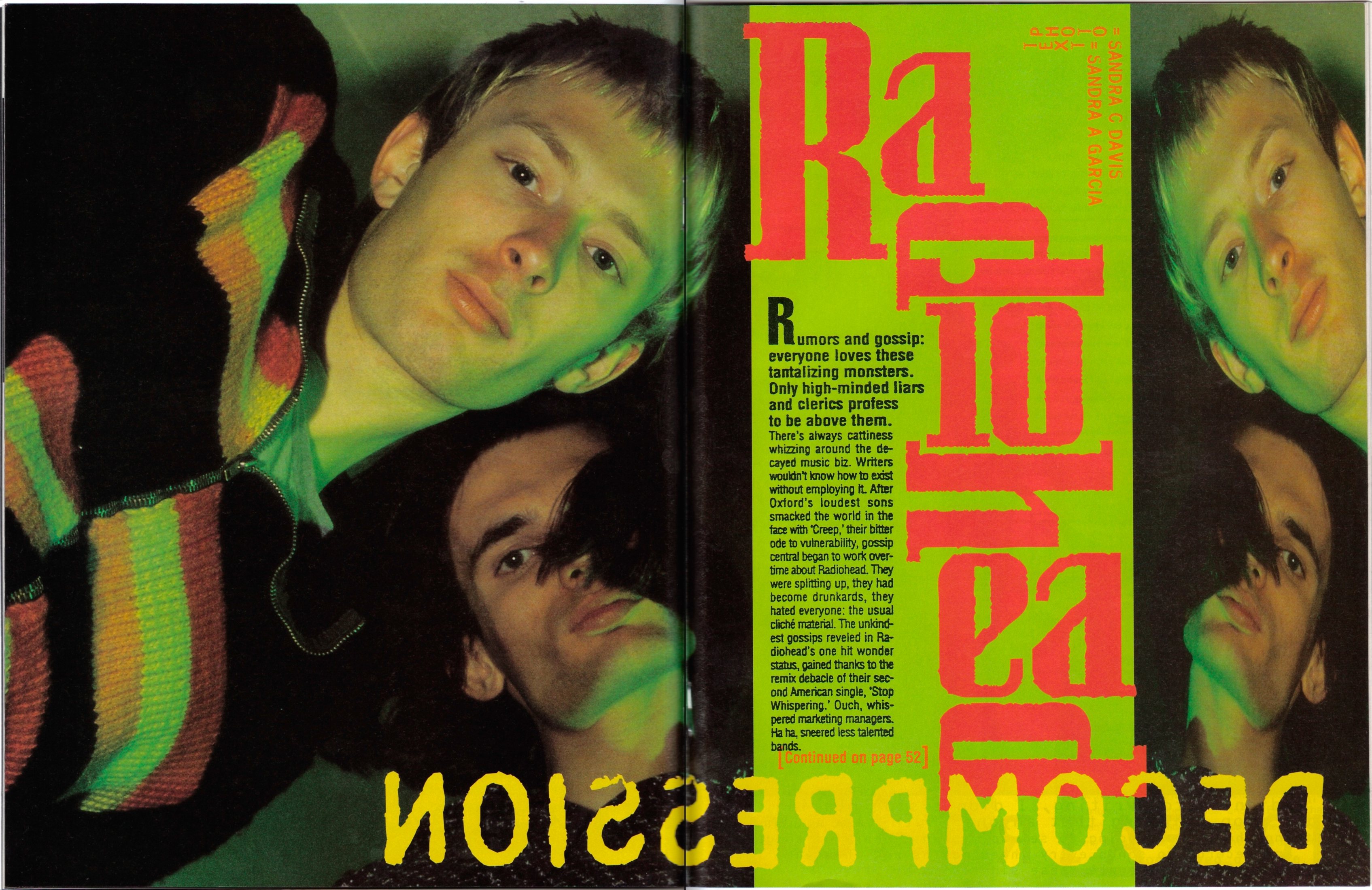 There's always cattiness whizzing around the decayed music biz. Writers wouldn't know how to exist without employing them. After Oxford's loudest sons smacked the world in the face with 'Creep', their bitter ode to vulnerability, gossip central began to work overtime about Radiohead. They were splitting up, they had become drunkards, they hated everyone: the usual cliche material. The unkindest gossips reveled in Radiohead's one hit wonder status, gained thanks to the remix debacle of their second American single, 'Stop Whispering.' Ouch, whispered marketing managers. Ha ha, sneered less talented bands.