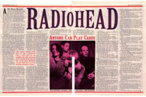 About six years ago, five like-minded young Englishmen from Oxford decided to do what many young men do to alleviate the boredom of school – form a band. Thom E. Yorke, Radiohead’s vocalist, failed his art courses at Exeter University, but was consoled by the fact that he was one of the best DJs at Exeter’s Lemon Grove Club (more about that later). During the summer of 1991, he got together with drummer Phil Selway, guitarist Ed O’Brien, guitarist Johnny Greenwood and his bassist brother Colin in Oxford where they all still live) and Radiohead was born.