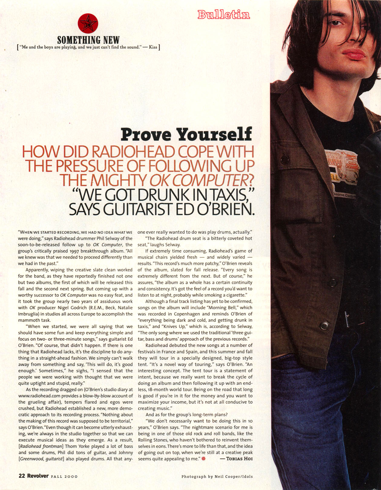 “When we started recording, we had no idea what we were doing,” says Radiohead drummer Phil Selway of the soon-to-be-released follow up to OK Computer, the group’s critically praised 1997 breakthrough album. “All we knew was that we needed to proceed differently than we had in the past.”