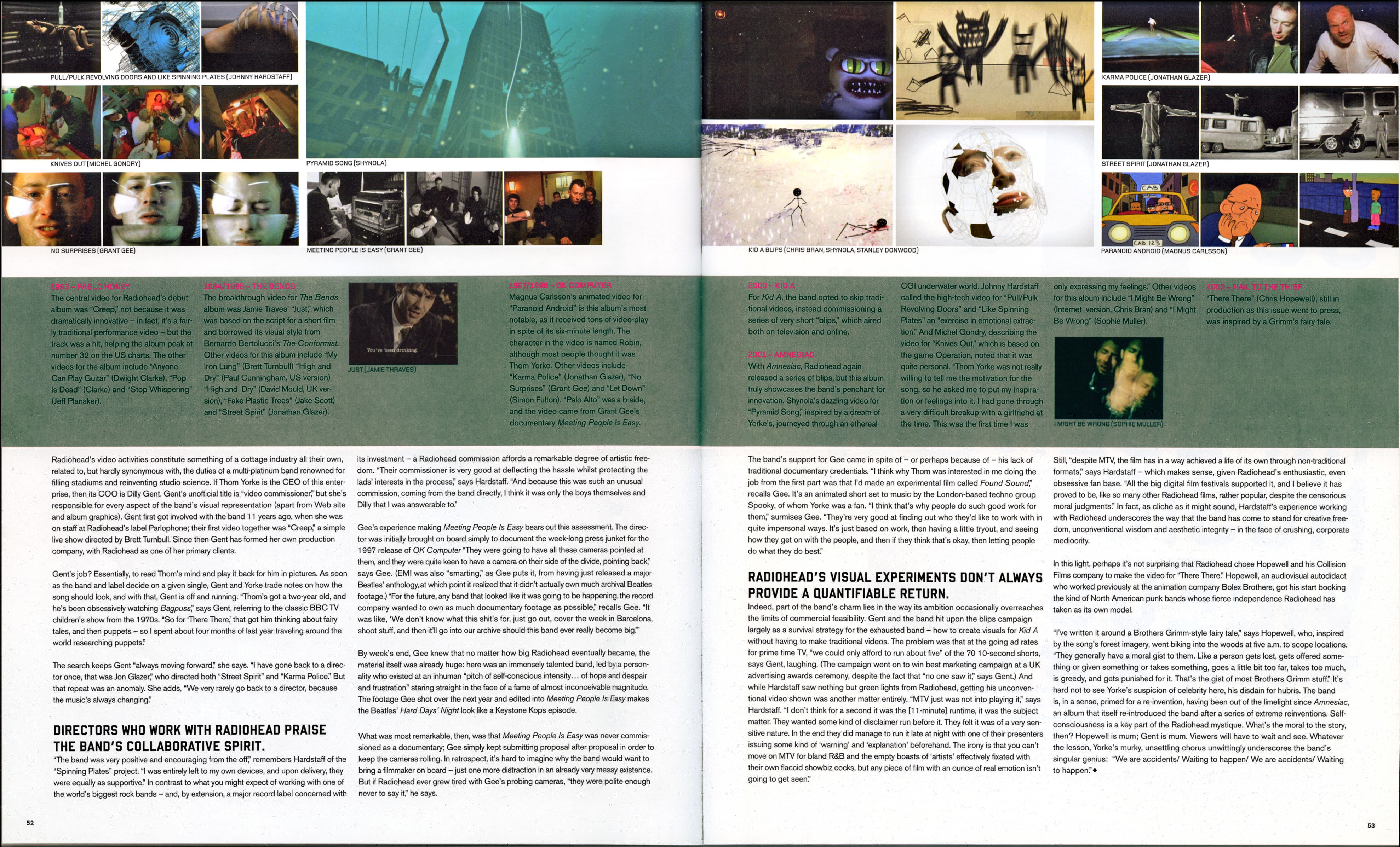 DIRECTORS WHO WORK WITH RADIOHEAD PRAISE THE BAND’S COLLABORATIVE SPIRIT.