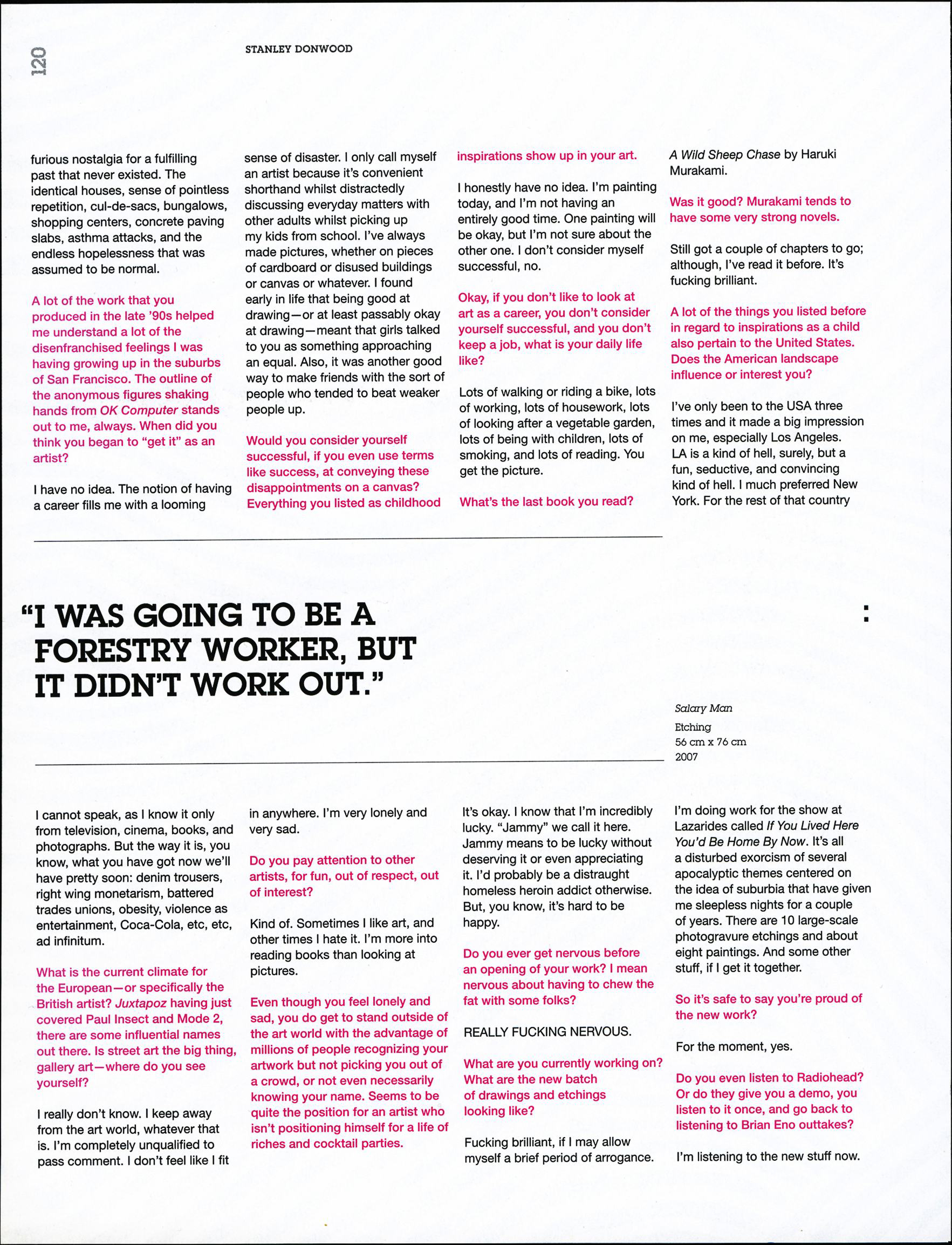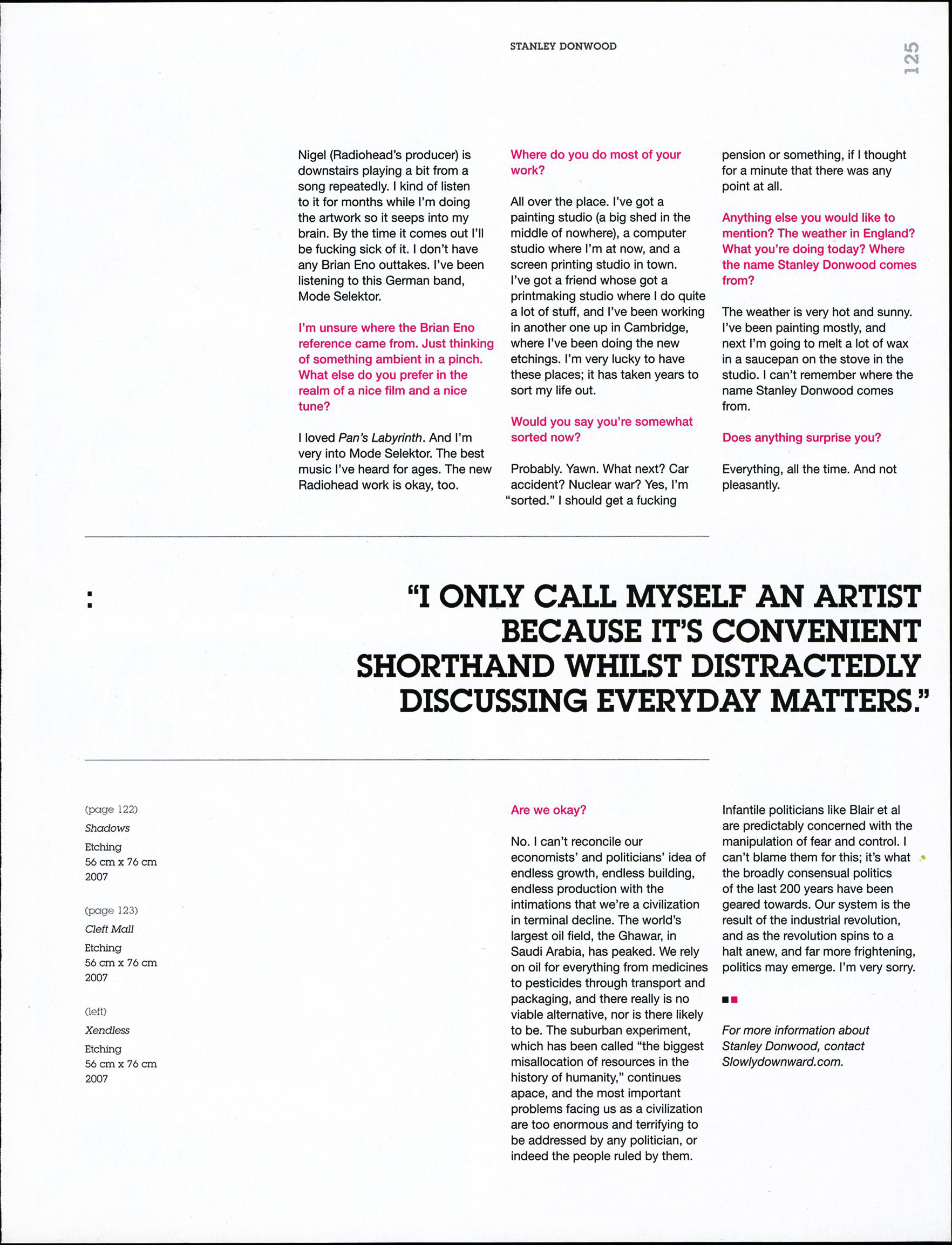 Anything else you would like to mention? The weather in England? What you’re doing today? Where the name Stanley Donwood comes from?