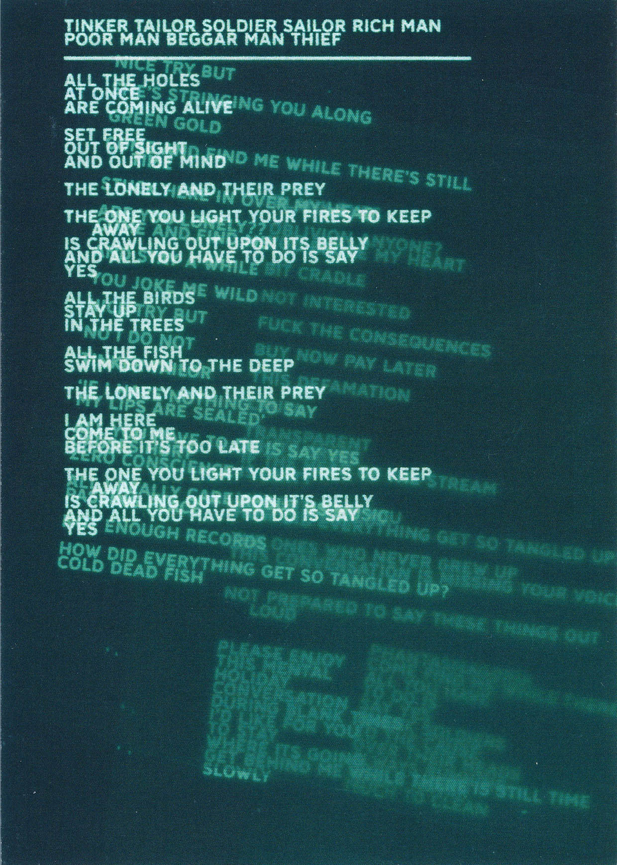 The lyrics for the song can be seen in one of eleven pieces of artwork made from several layers of tracing paper, including some early drafts beneath the final one: