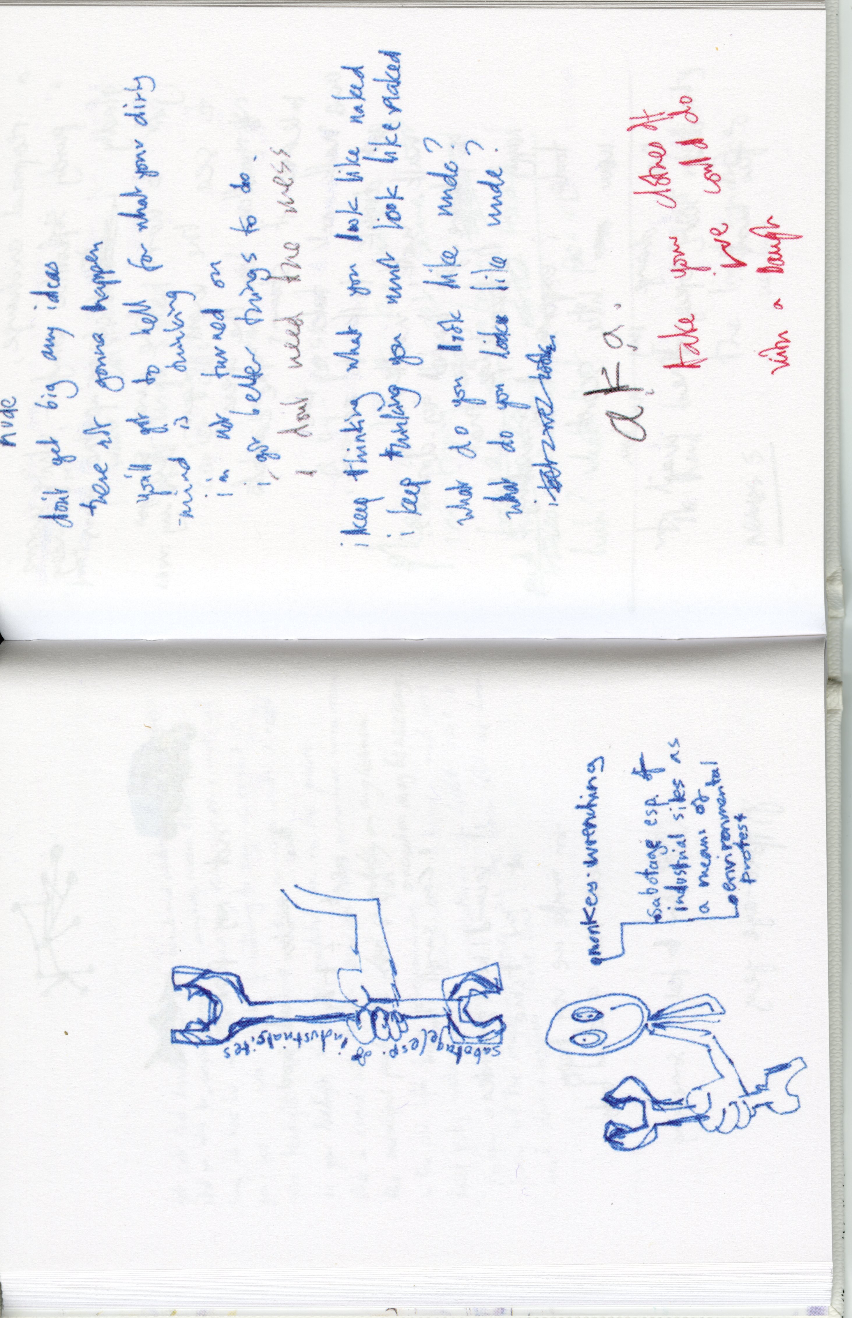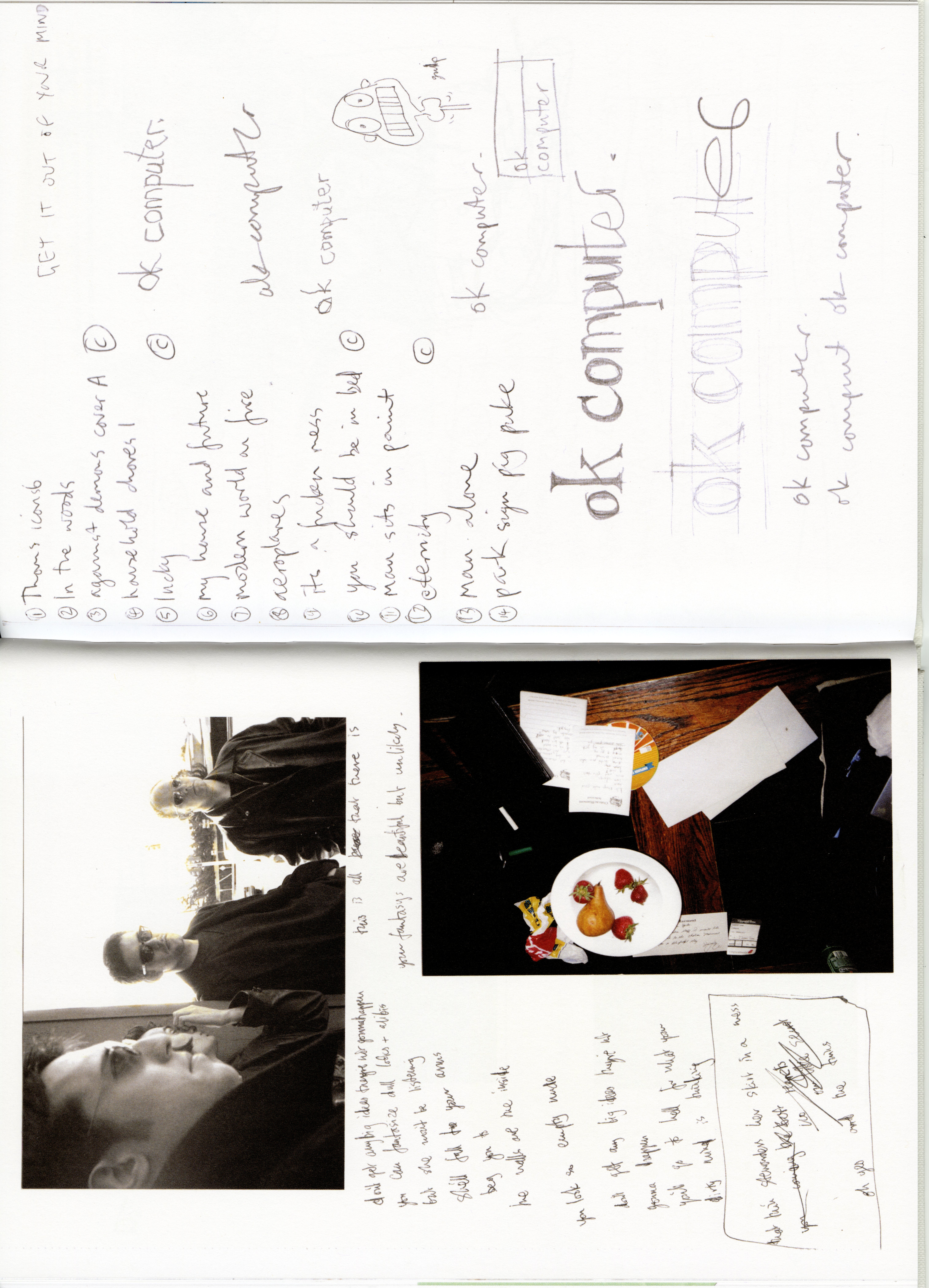 Mentions of the song appear a few times in the books published in the OKNOTOK deluxe box set, which were written in during the making of the album (click on each to view the full image):