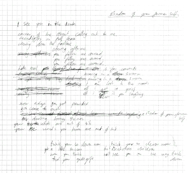 In the Paper Chamber portion of the Kid A Mnesia Exhibition, there is this one image with draft lyrics of "Follow Me Around". An attempted transcription is below: