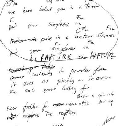 This handwritten lyric sheet with chords was posted in the